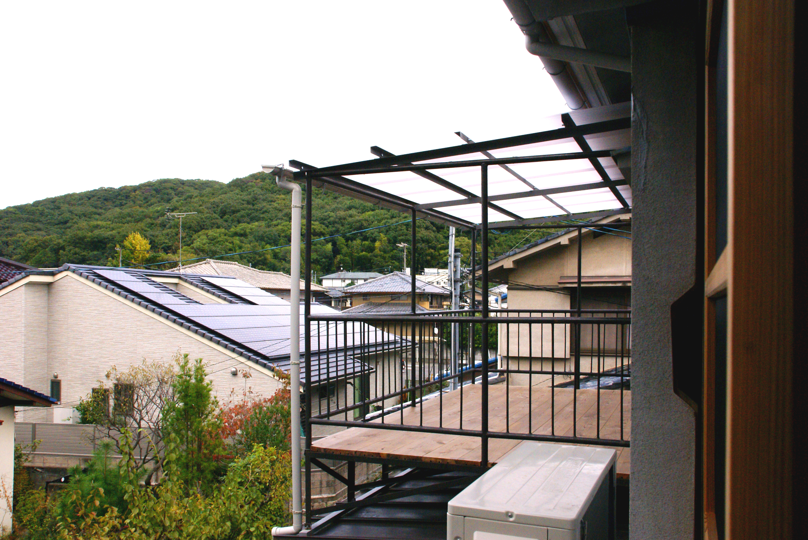 路地から見えていたテラス。気候のいい時には広いテラスで過ごすのが気持ちよさそう。