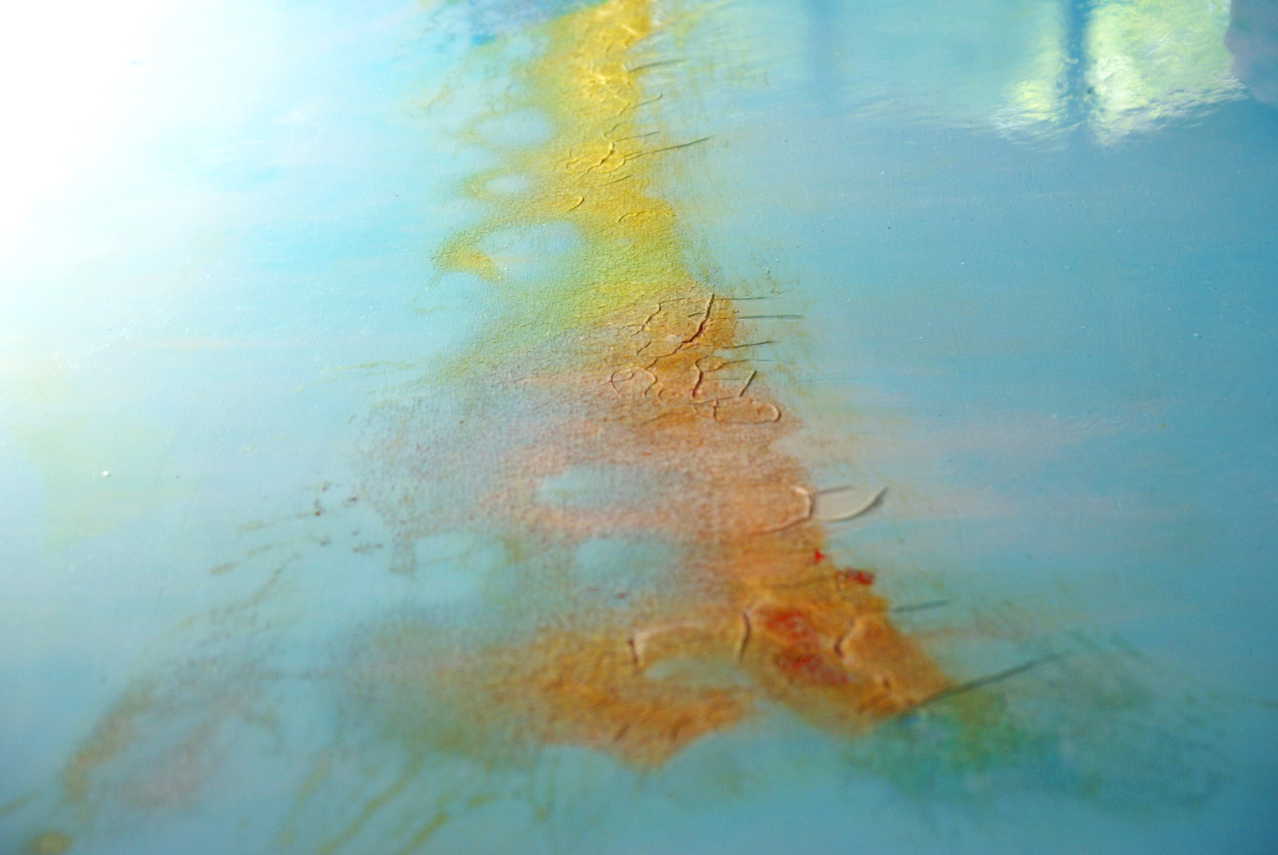 ダイニングの大きいテーブルの天板。エポキシ樹脂を使って石井さんがつくったオリジナル品。