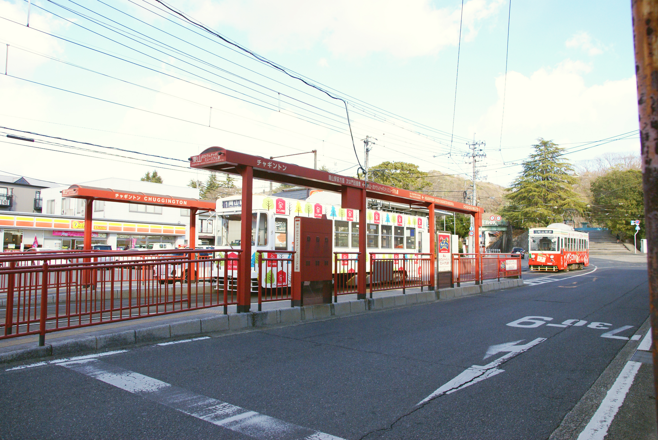 岡山市内を走る路面電車の東山電停。2つある路線のうちの東山線の終点。