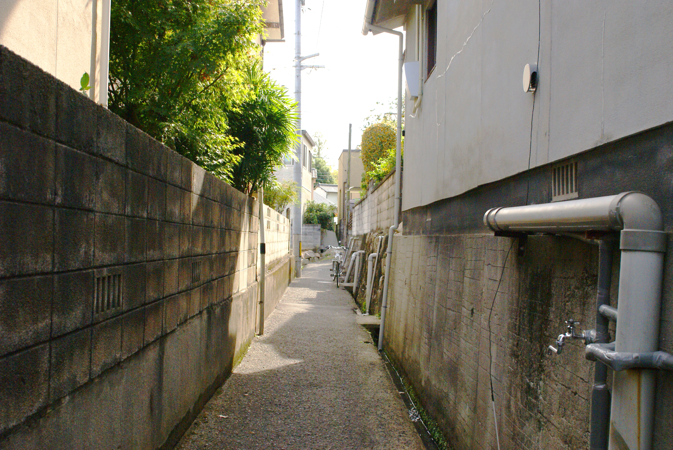目の前の道。車は通れないけれど、細い路地が楽しい。