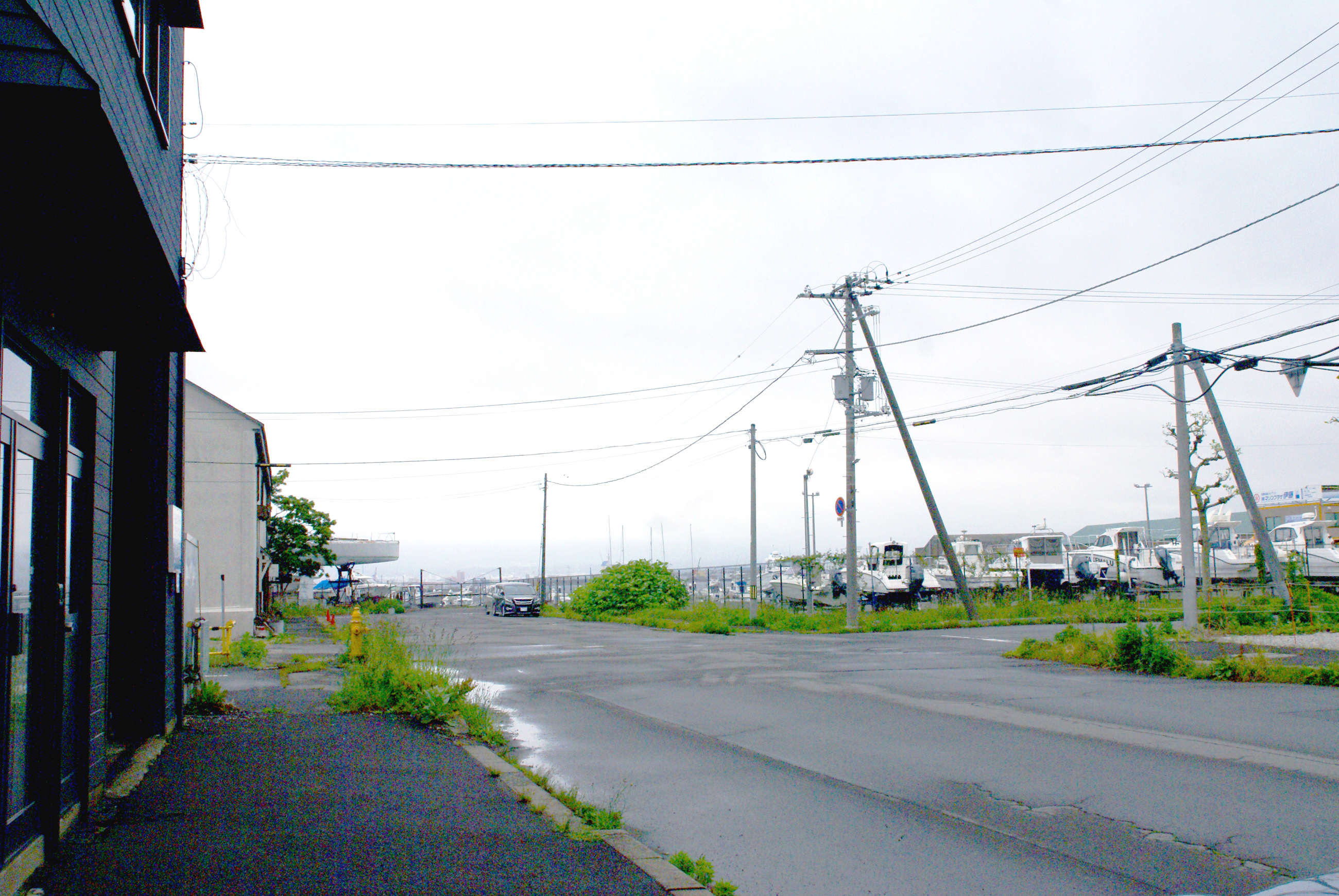 花屋の作業場からは船が見える