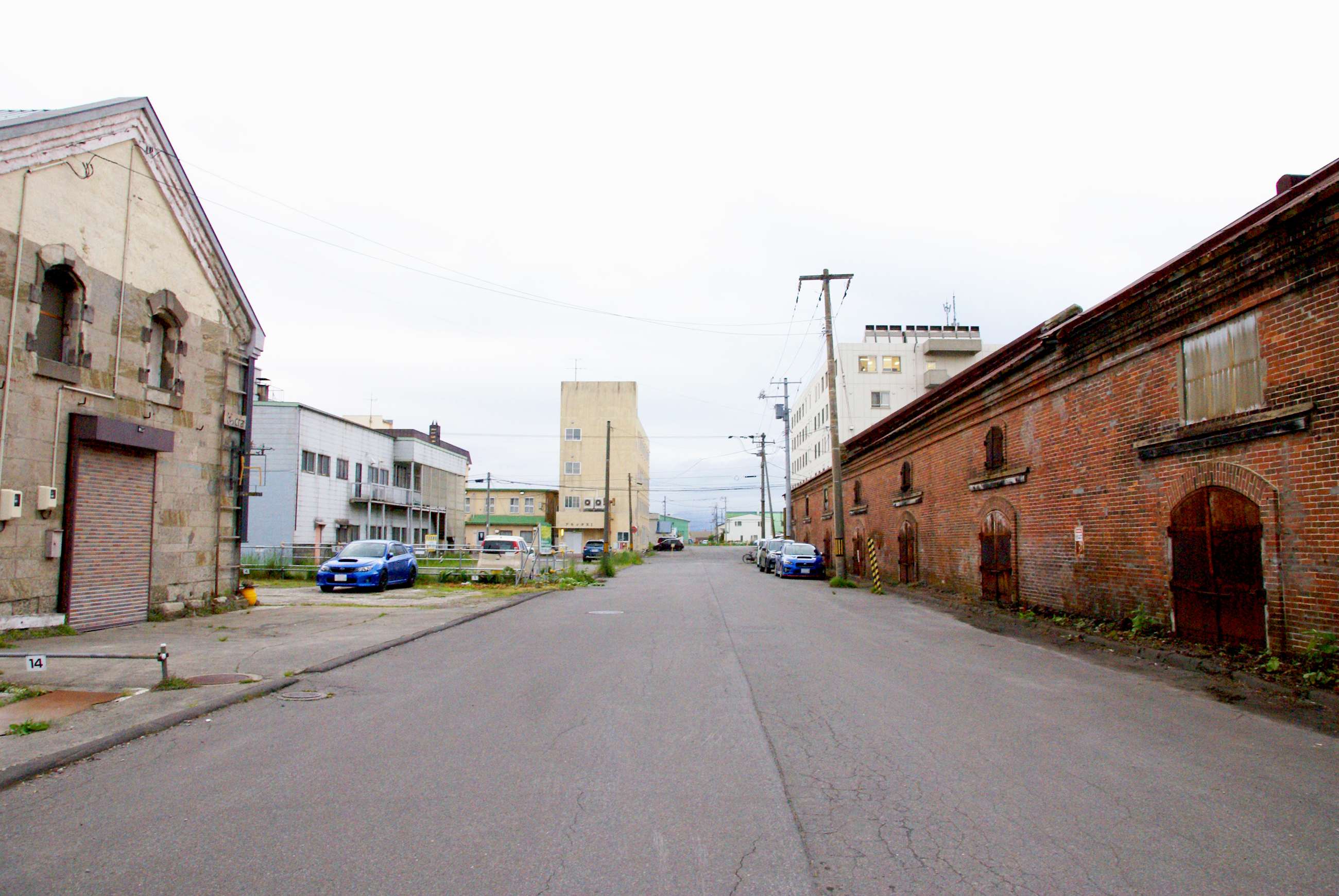 épuis & co.の目の前の通り。レンガの壁が続く姿が印象的だ。