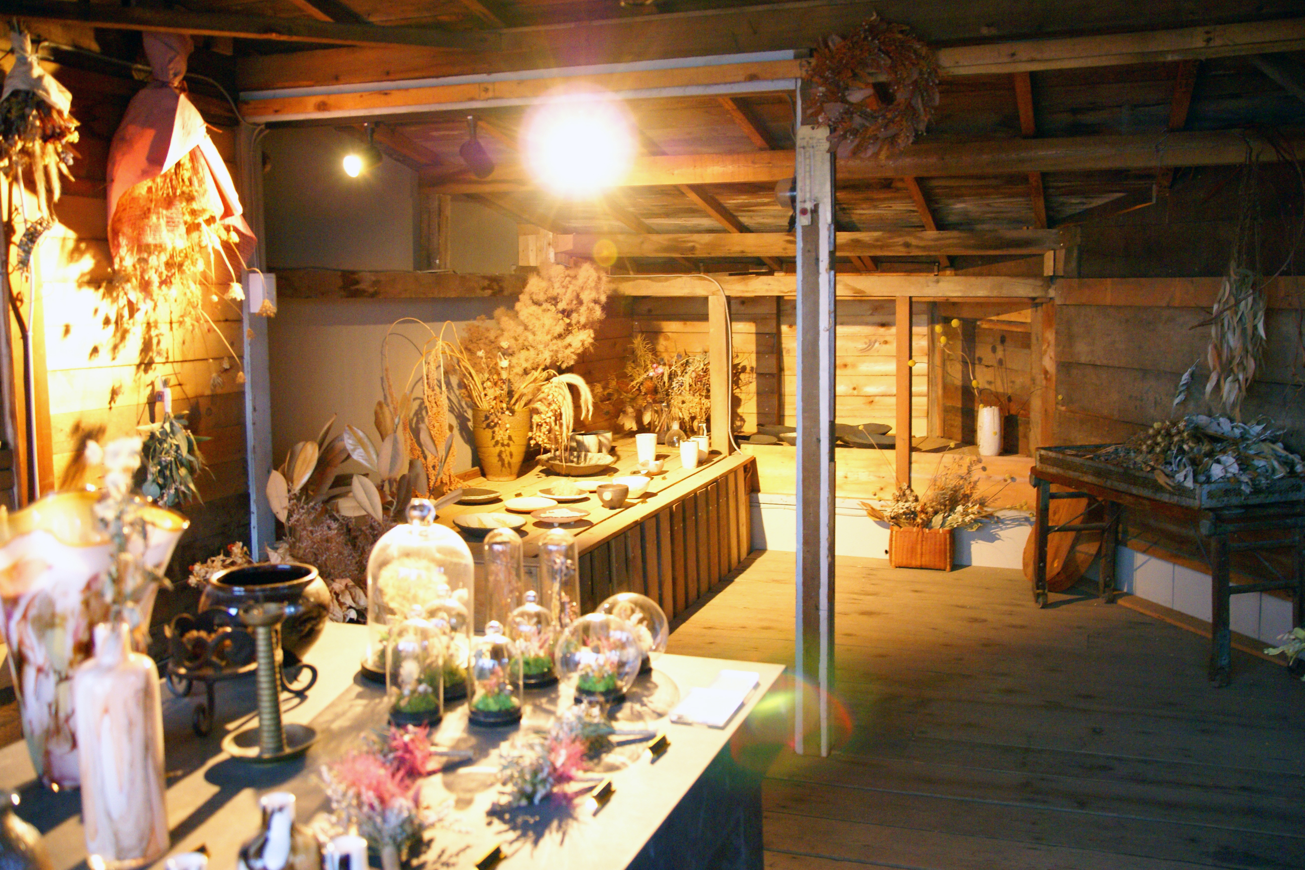 ツリーハウスのような2階ではドライフラワーや花器を販売