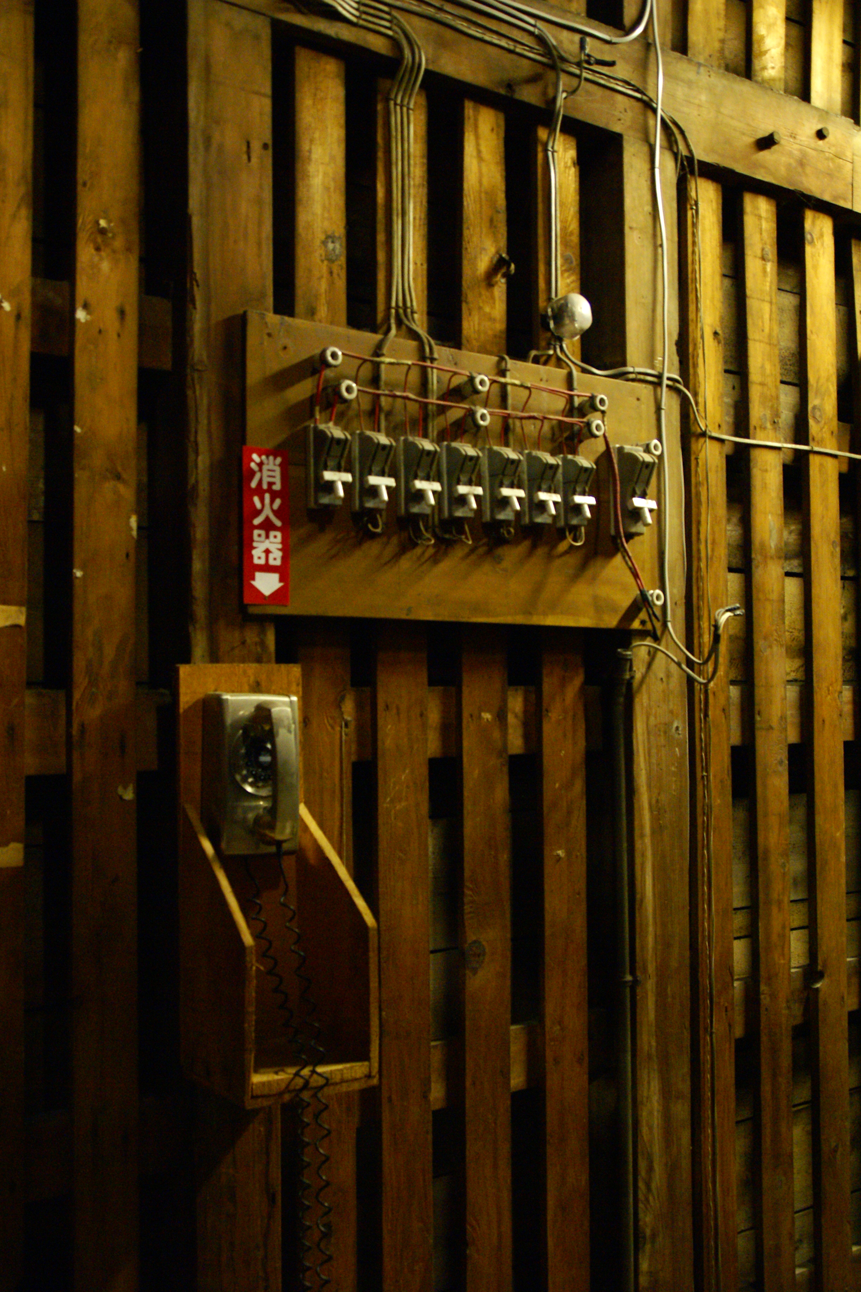 昔のスイッチや電話も残されている