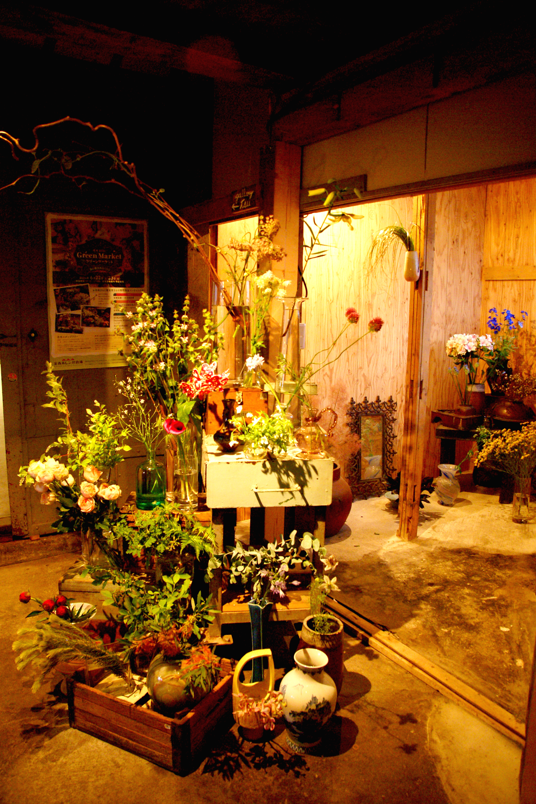 お店の看板がかけられている背の低い建屋が花屋のスペース。花屋の世界観ももちろん素敵なのだけど、お花を眺めながら進んでいくと、奥に広がるギャラリー空間に圧倒されて思わず言葉を失ってしまった。