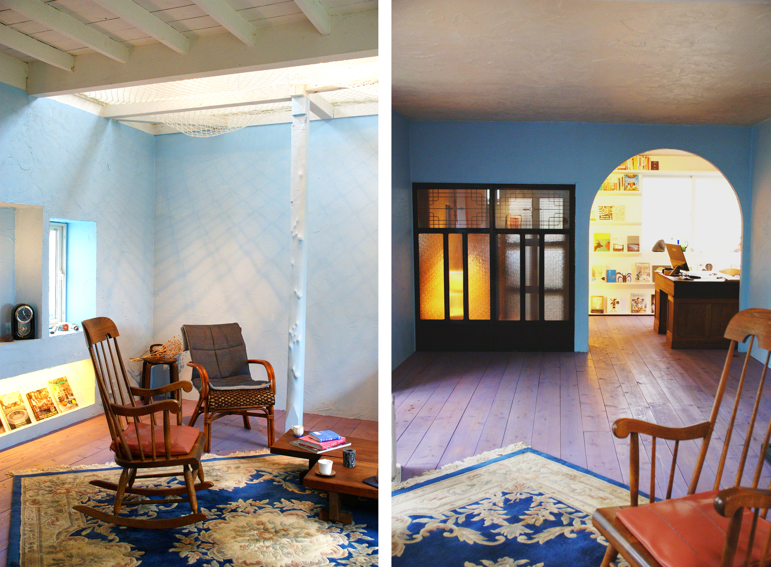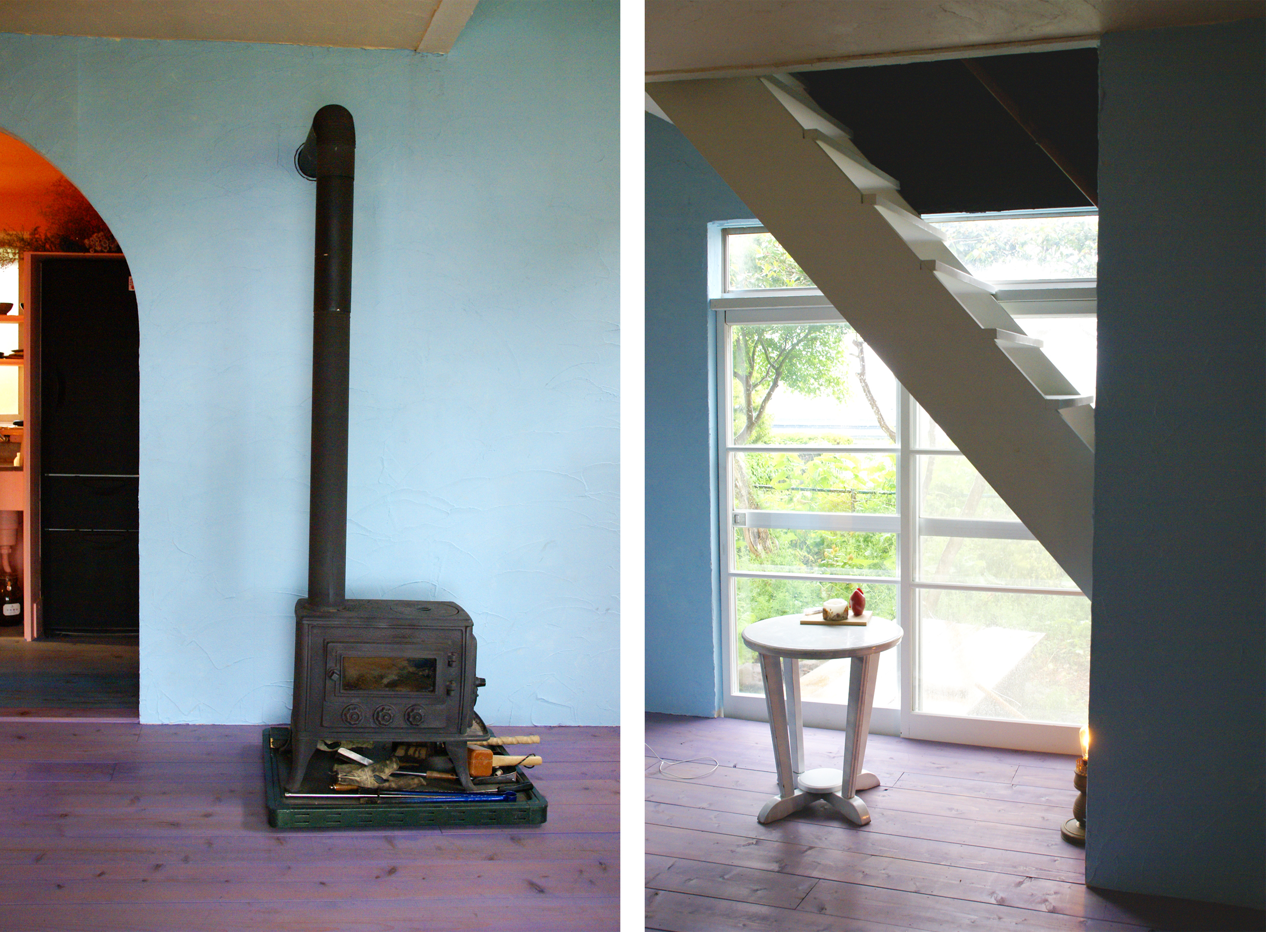 最初のステージで出会った仲間たちにも手伝ってもらい、住みながらDIYをして6ヶ月間かけて完成した、住まい兼ショールーム。