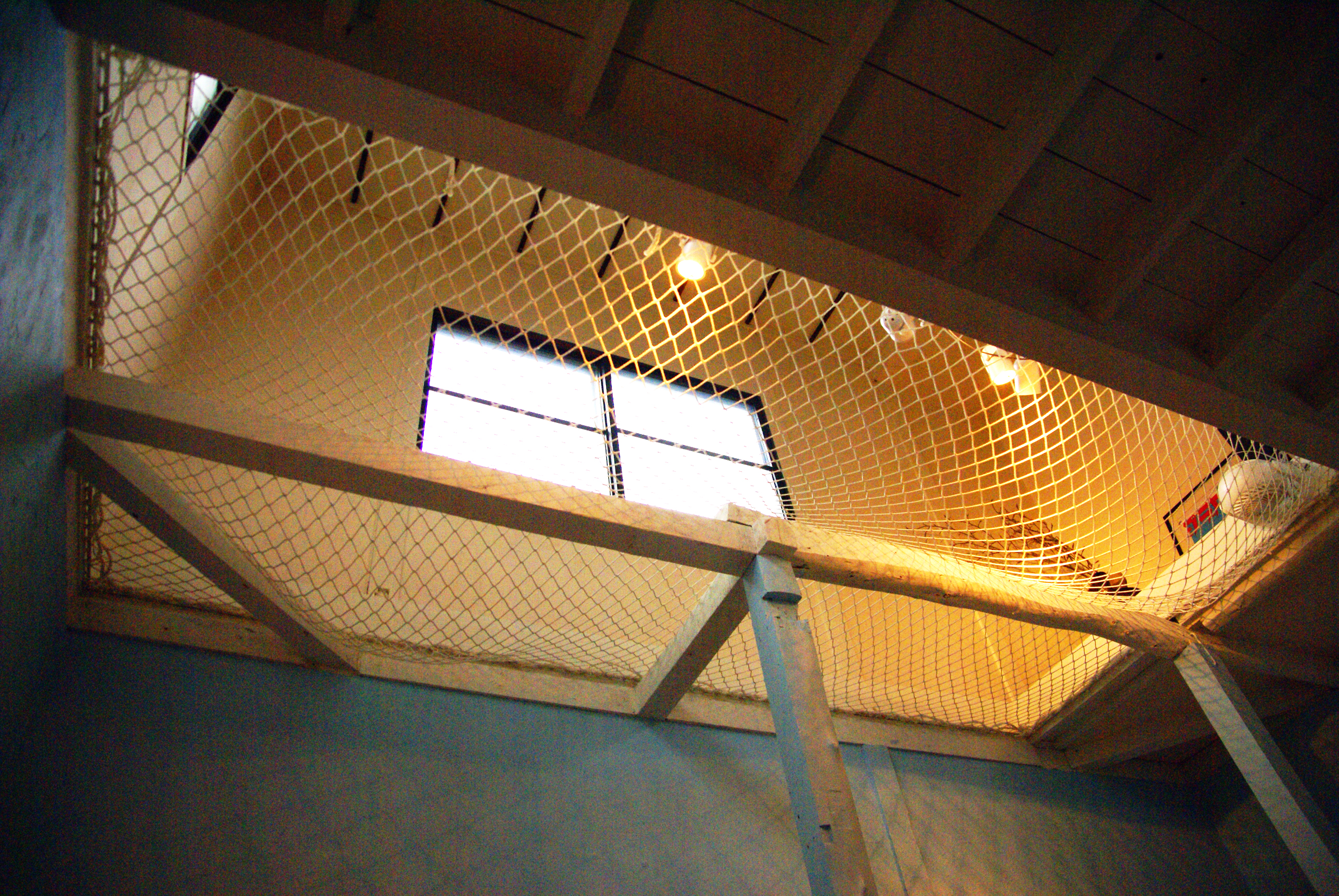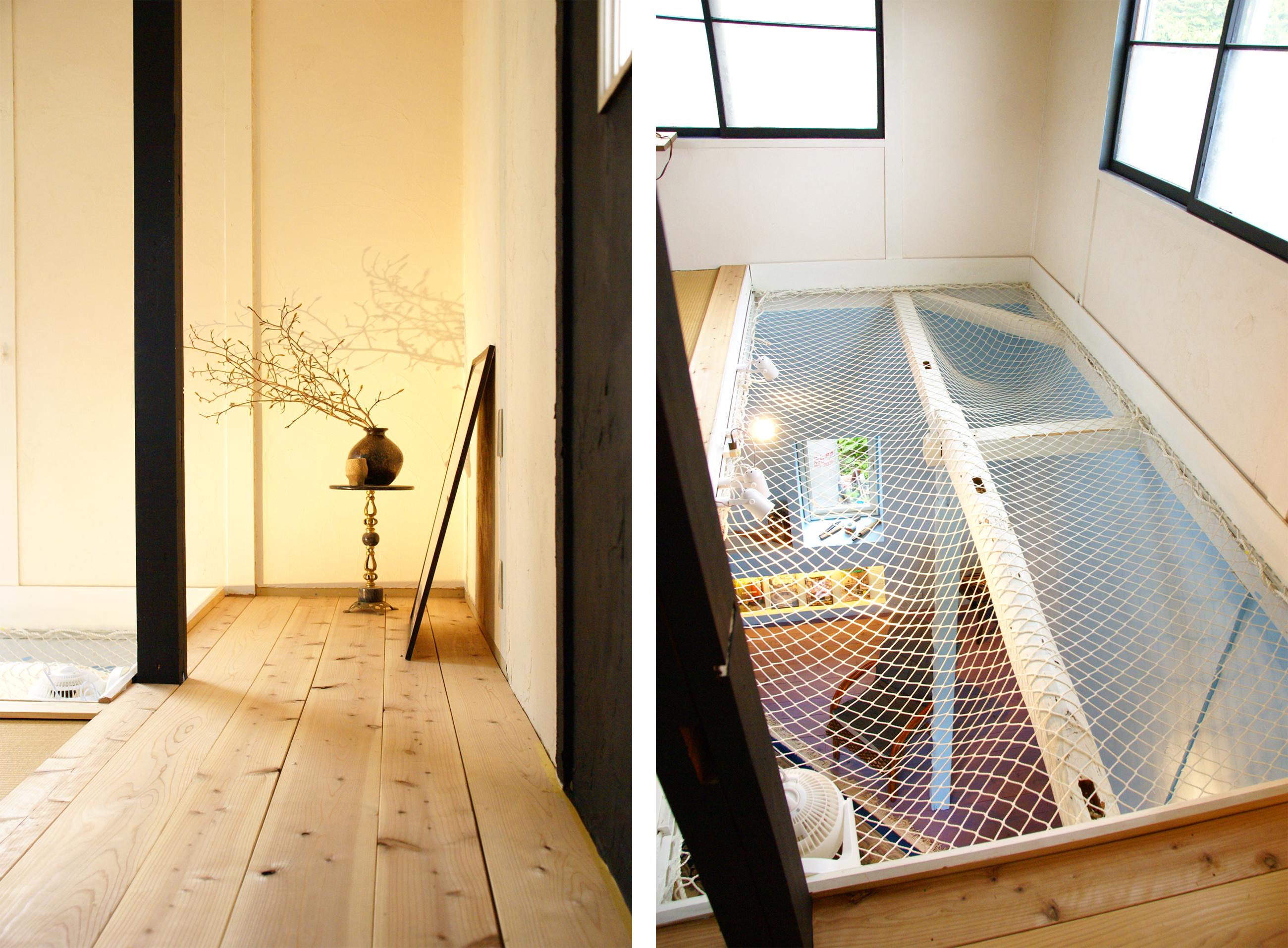部屋奥の天井は吹き抜けになっていてハンモックがある(もちろん乗れる)