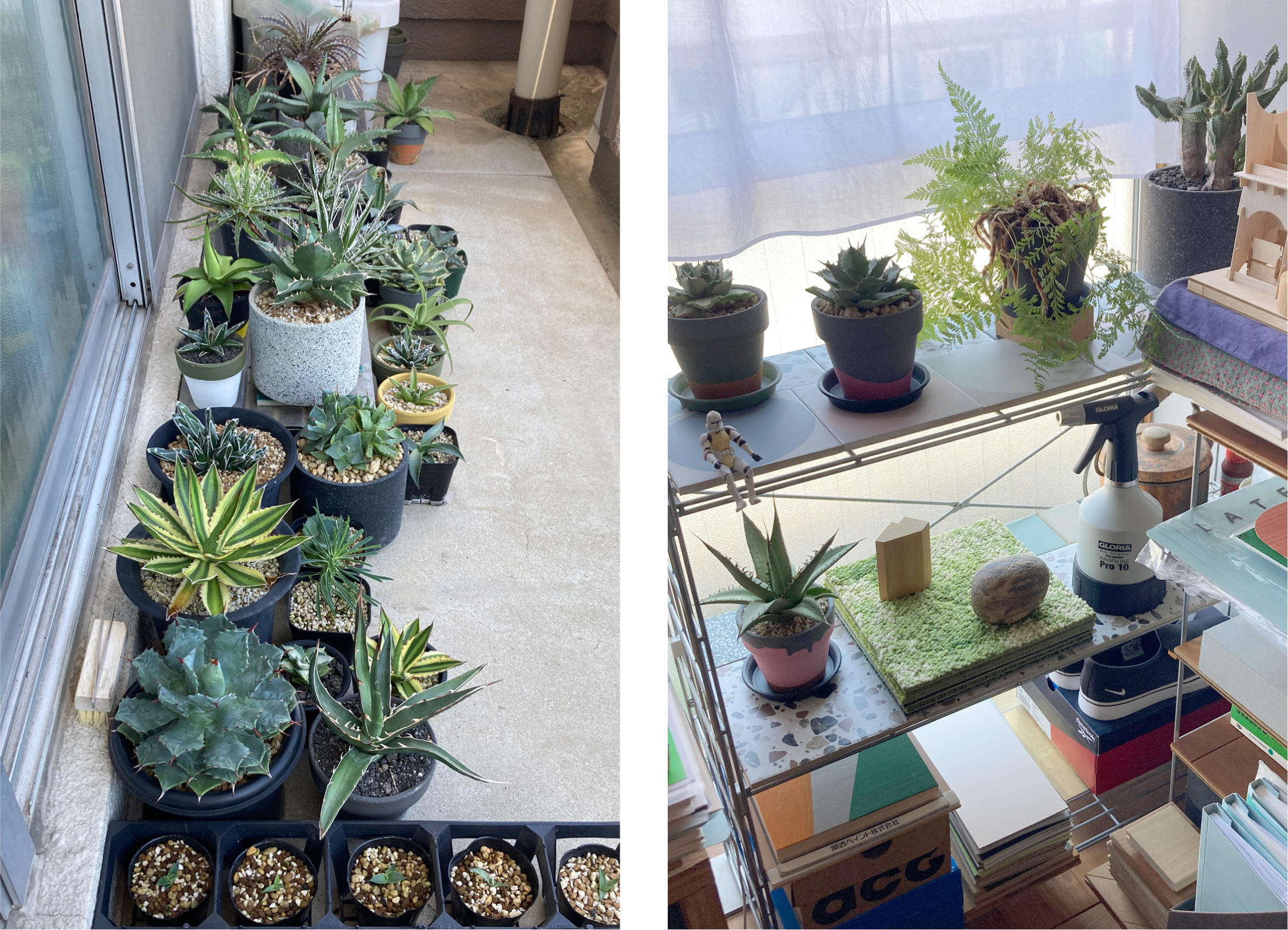 グリーンは秀紀さんの趣味。お店かと見まごうほどの数があって、毎朝観察して変化を楽しんでいるという。