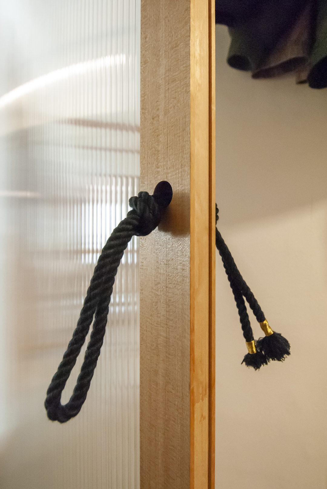 建具の取手は自作。レバーハンドルを使わず紐を通しているユニークな取手(提供:studio juna)