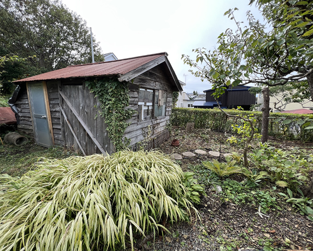 お庭には家とは別で小屋があるので、庭作業のあれやこれやを入れておくのに便利そう。