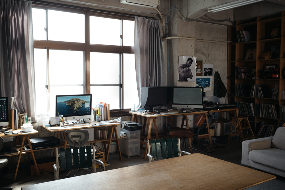 「昔からあまり切り替えを気にしたことがないんです。このビルに越してくる前、仕事場と家が別だった時も、家でご飯食べてる時に仕事の話をするのは普通のことで。ここ(オフィス)が自分の部屋みたいになっていて、良いことなのか分からないんだけど」と笑う。