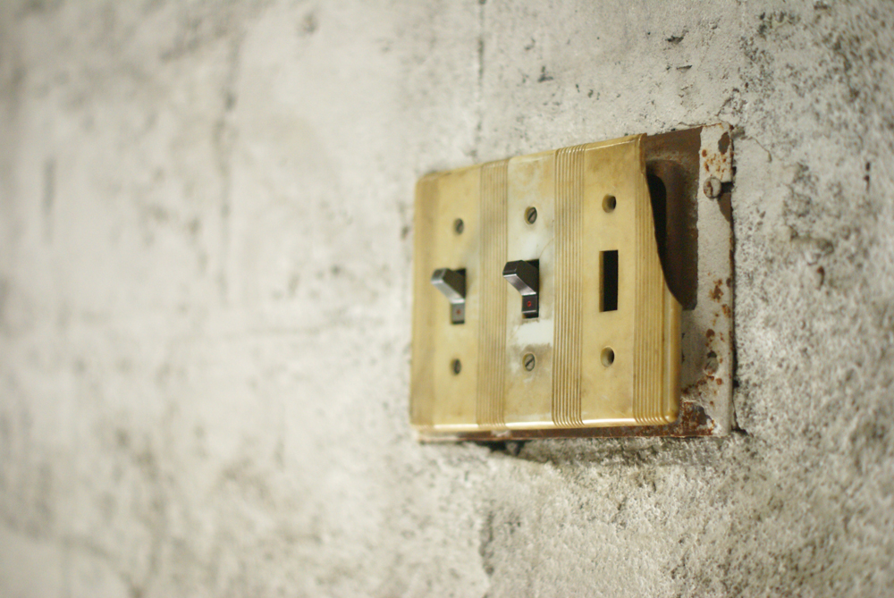 古いスイッチも床に大きく開いた穴も、そもそも古い建物であることも。