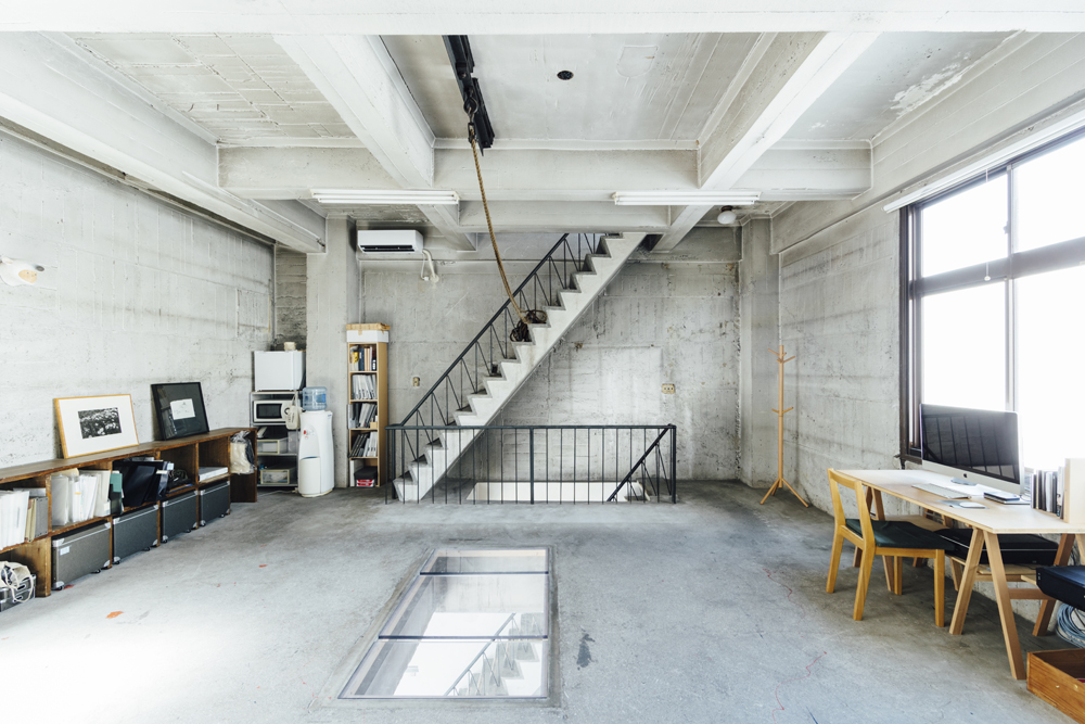 元農機具メーカーの社屋だったために大きな機械を置いていたであろうことが天井の高さから窺え、物件の特徴とフォトスタジオに必要な要素とがうまく適合している。