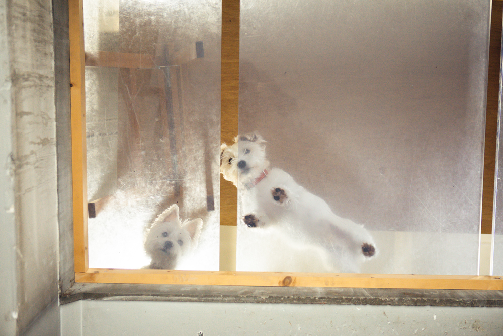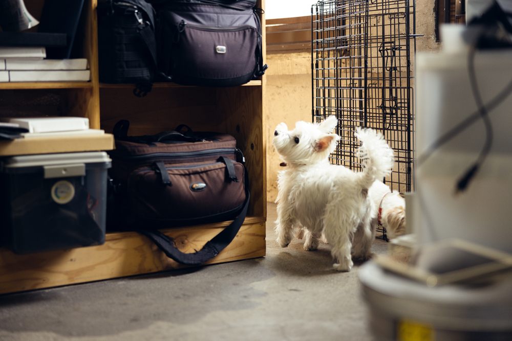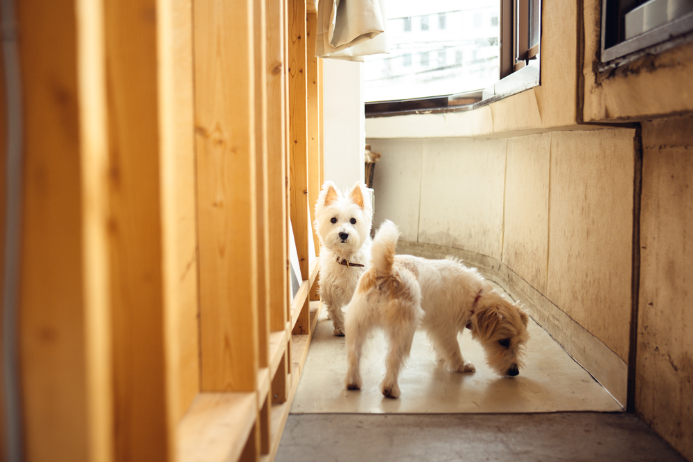 愛犬たちはオフィススペースだけでなく、2匹仲良く、オフィスも内田さんの住居スペースもおかまいなく自由に駆け回る。