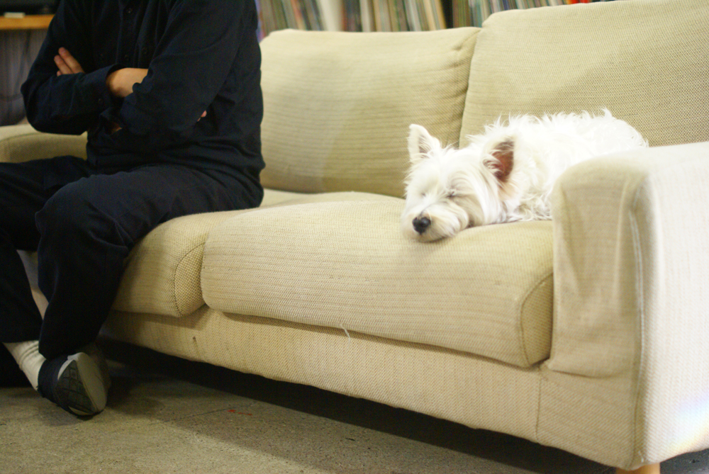 お話を伺っている時に隣で寝ていたのはスタッフ上田さんの愛犬