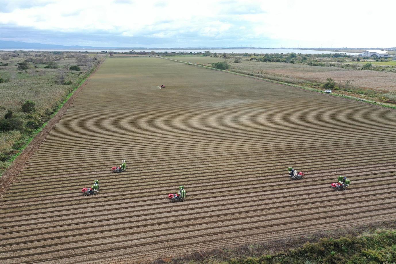 (みらい共創ファーム秋田にて玉ねぎの植え付け作業などを行います)